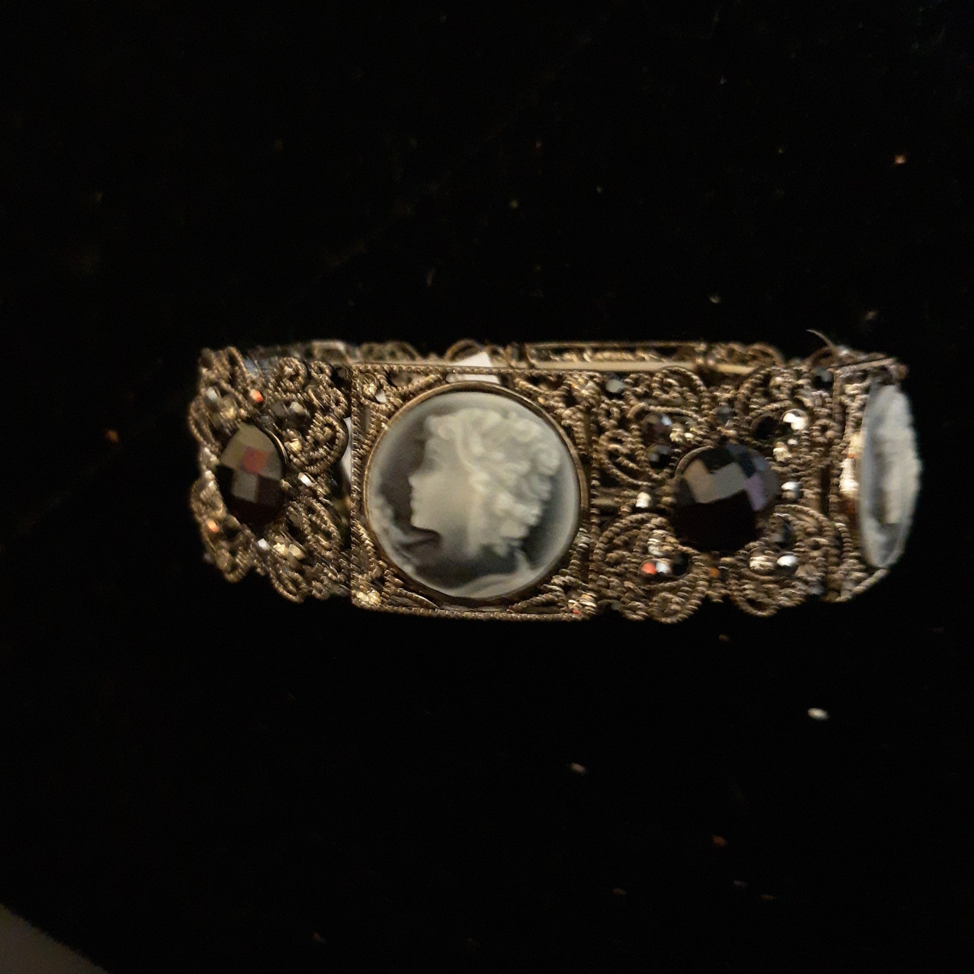 Antique Silver Cameo Stetch Bracelet width 3/4 "
