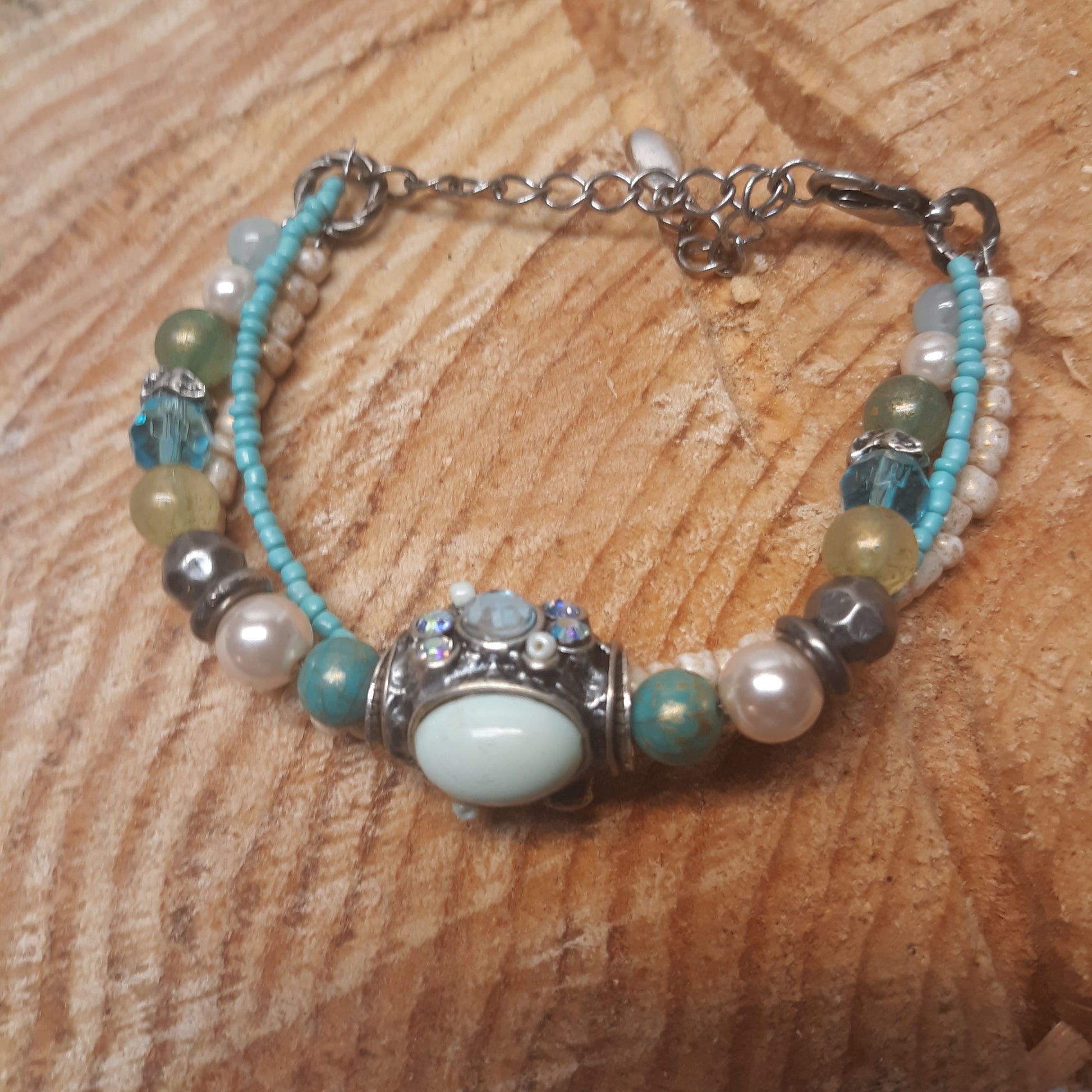 Three Strand Bracelet with Turq and Crystal's in an Antique Setting Bracelet Adjustible Length