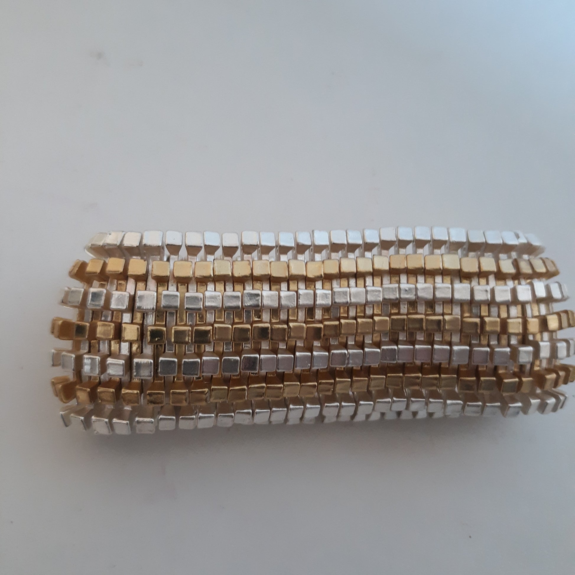 Silver and Gold Tone Stretch Bracelet Width 1 1/4"