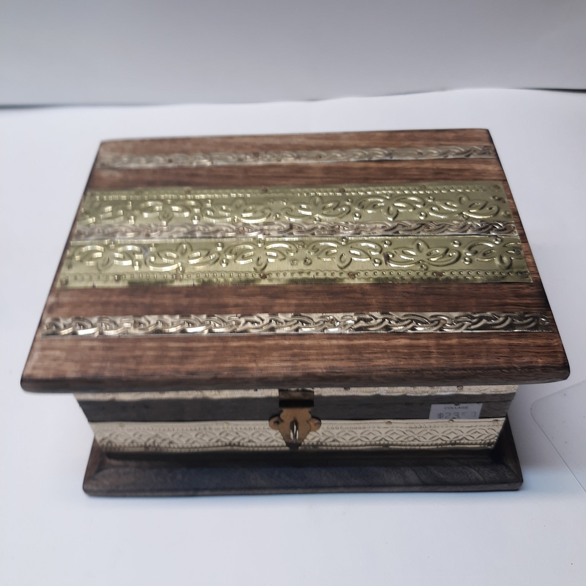 Hand Made Wood Box From India Embellished With Brass