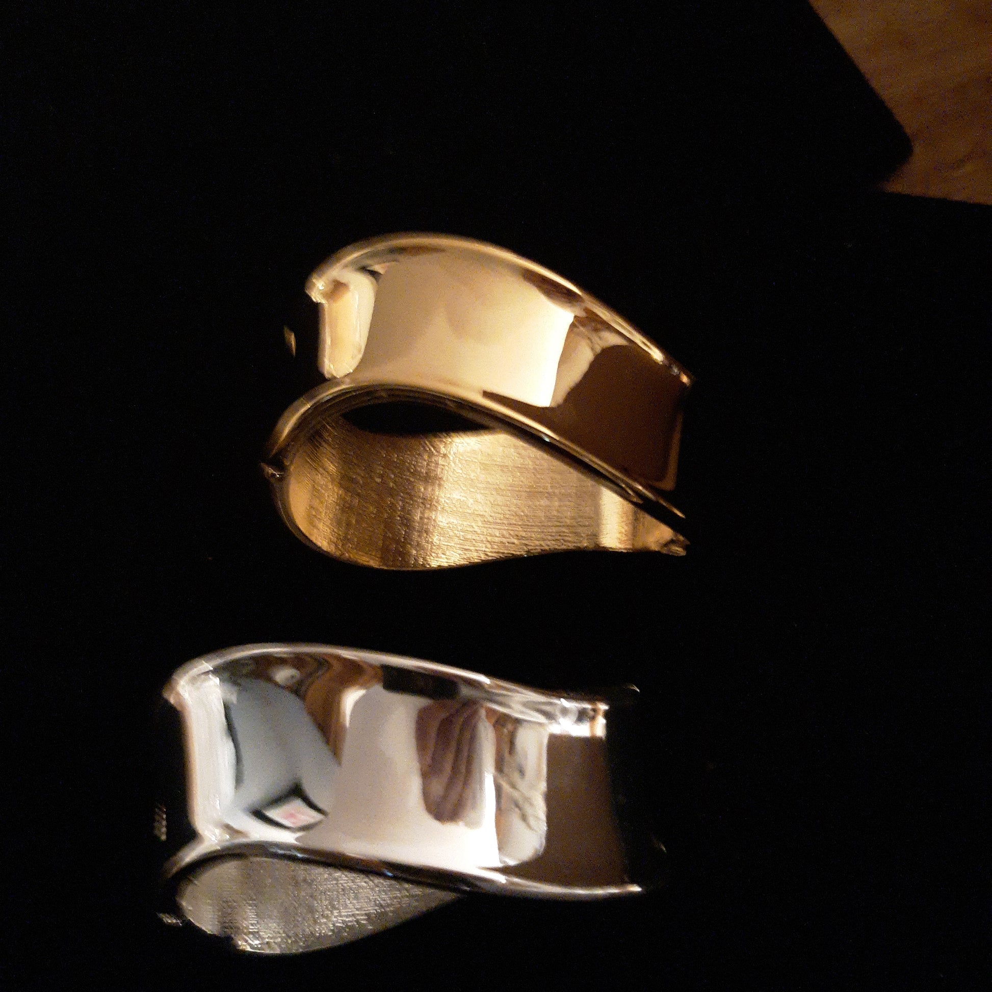 Hinged Curved Bangle Available in Silver Tone or Gold Tone