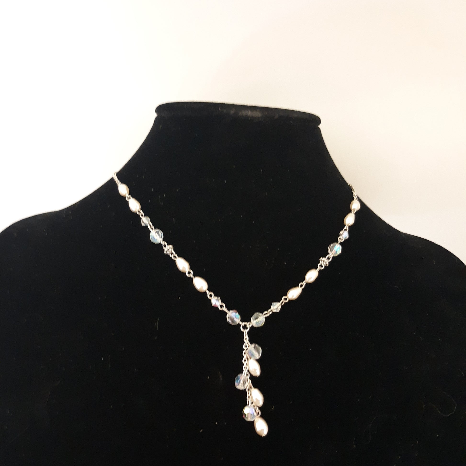 Necklace Pearl with Amethyst and Pearl With Clear Crystal Length 16" to 18" )