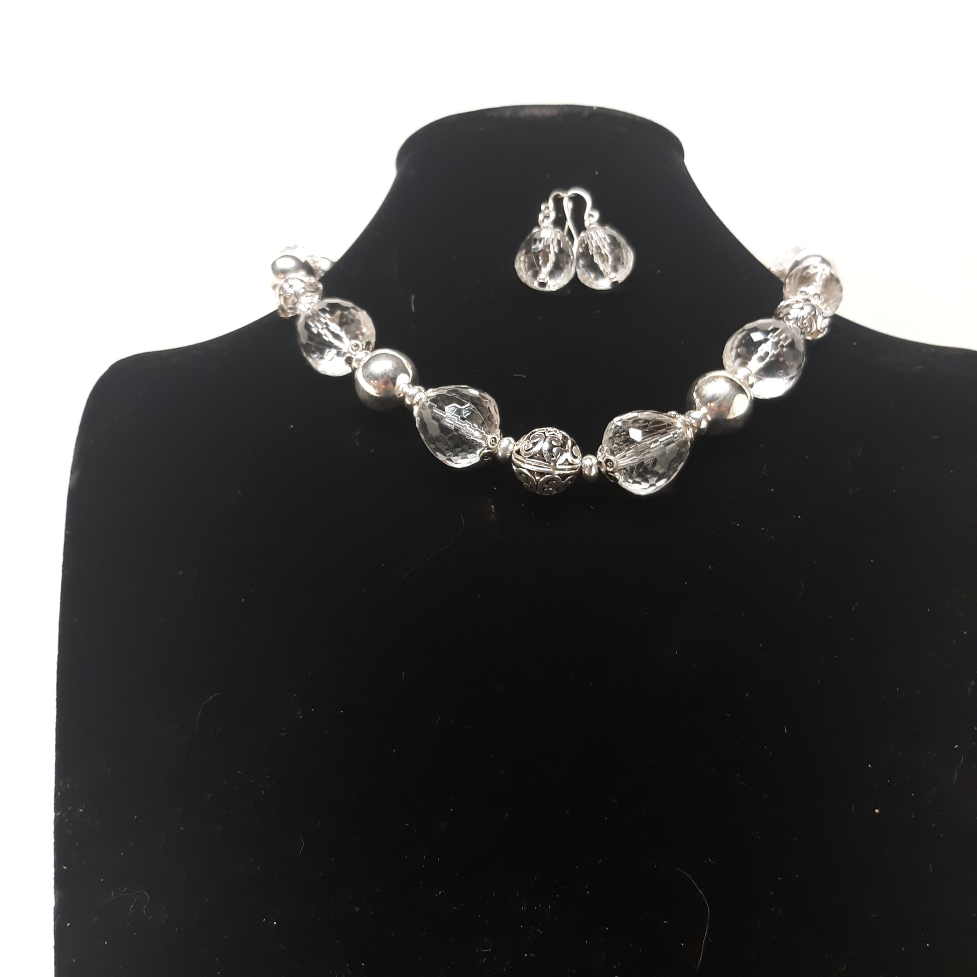 Silver Bead Necklace Earring Set