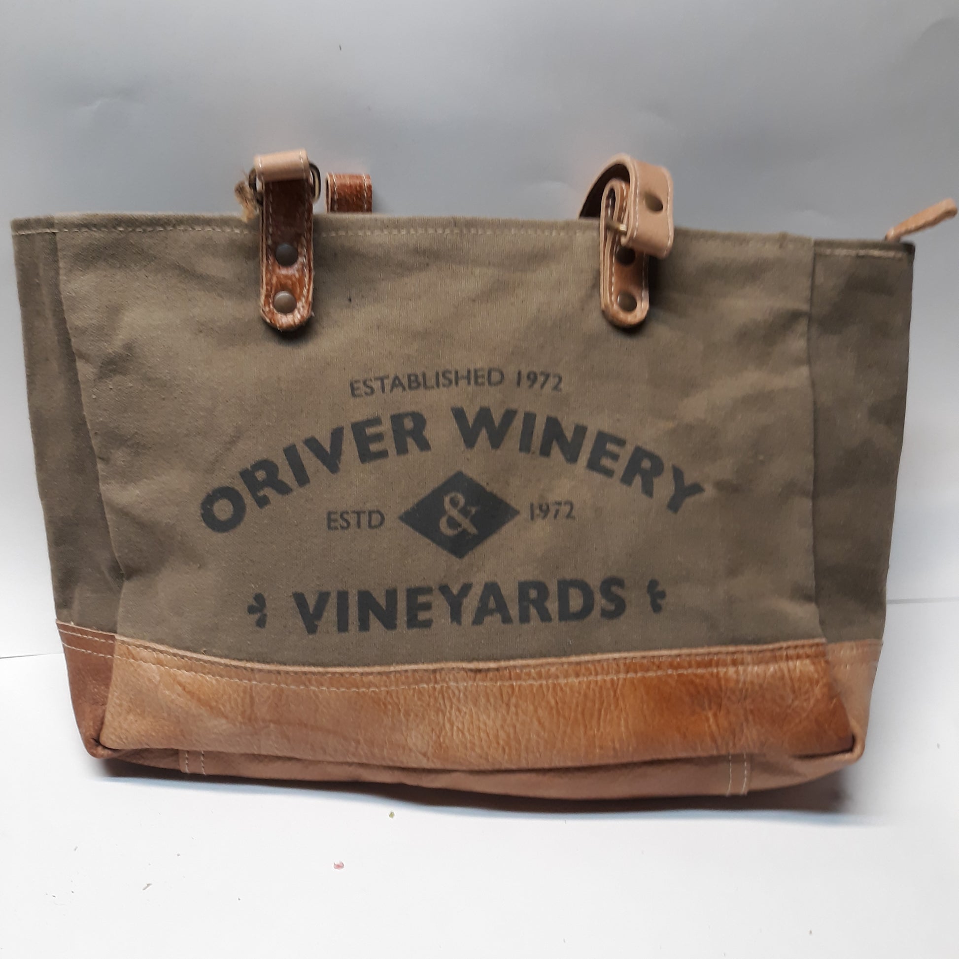 Canvas Shoulder Bag with Leather Trim ORiver Winery Width 14" Height 10"
